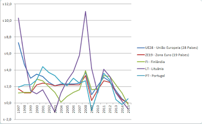 1. Constrói e interpreta dois gráficos semelhantes aos anteriores, partindo da Taxa de Inflação (Taxa de Variação do Índice de Preços no Consumidor), no PORDATA.